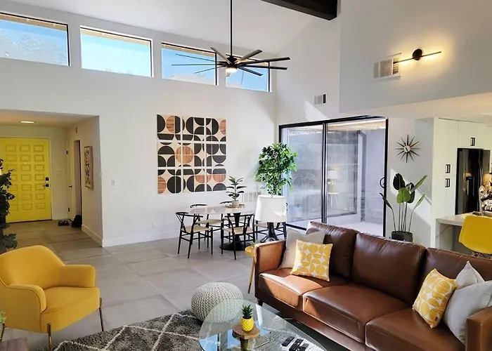 Dotato di una piscina esterna per il relax degli ospiti, la villa Upscale Mid Century On The Green W Private Hot Tub si trova a 4 km dallo Zoo e giardini Living Desert. Dotato di accesso a una terrazza, questo luogo con 2 camere da letto si trova a una distanza di 4 km da Sunnylands Center & Gardens.
